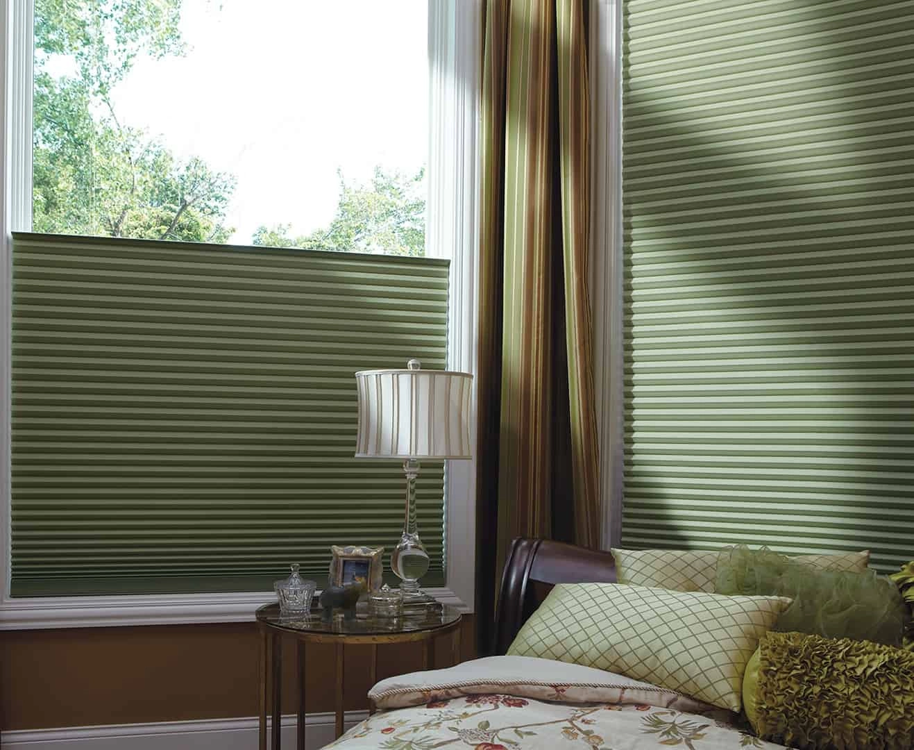 - Duette® Honeycomb Shades: These room-darkening shades are the best energy-efficient shades of their kind. Their cellular design and insulating layer traps air for maximum energy-efficiency all year round. The insulating layer allows for great acoustics as well. Our high-performance fabrics come in a variety of colors, pleat sizes, textures, opacities, and operating systems. We also offer the LightLock™ system for unparalleled darkness with a side channel that reflects or absorbs light.